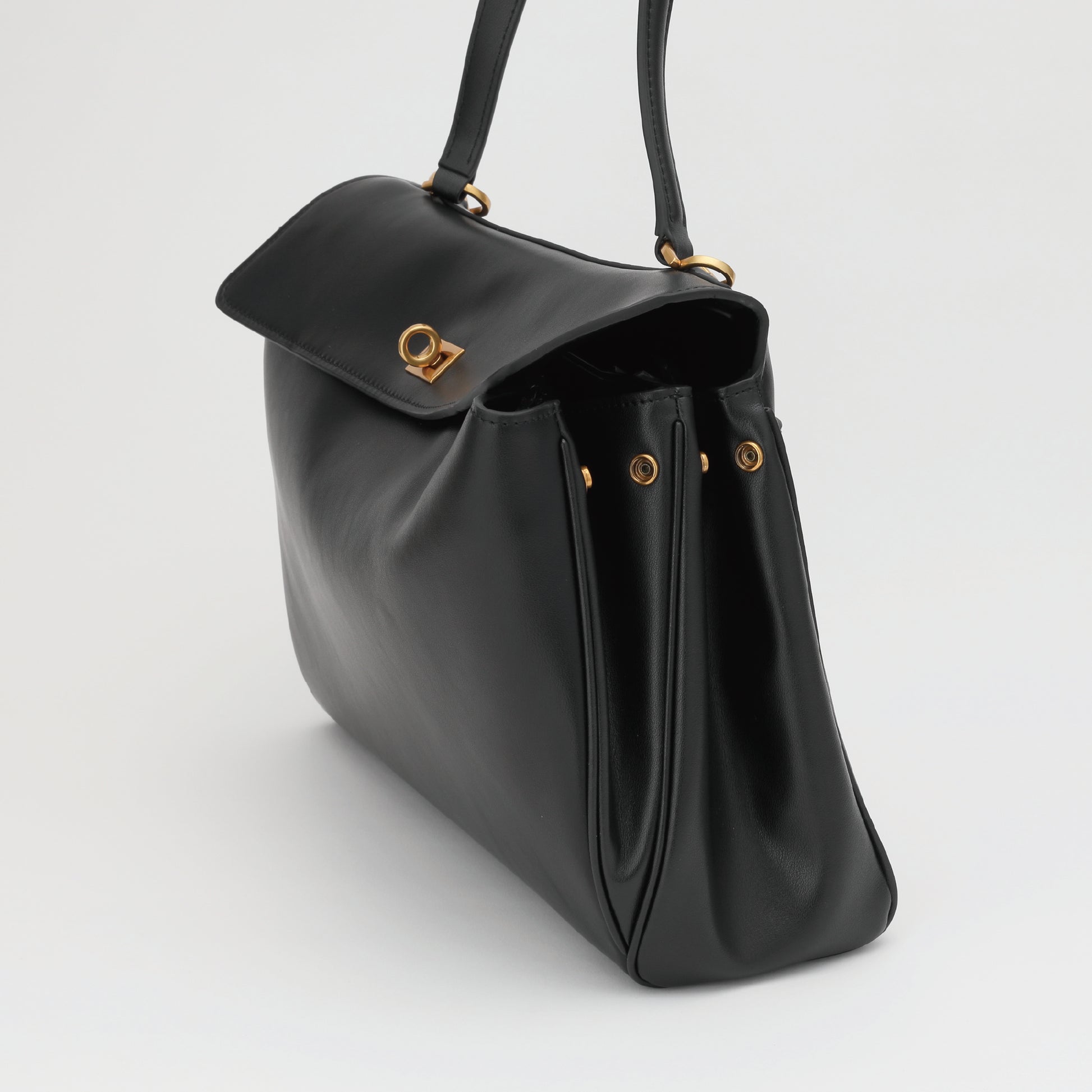 控えめにあしらわれたゴールド金具が、全体を引き締める上品なアクセントに。季節やスタイルを選ばず寄り添う万能さを備え、日常使いからビジネスシーンまで幅広く活躍します。持つ人の魅力を静かに引き立て、装いにタイムレスな品格を添えてくれる一品です。