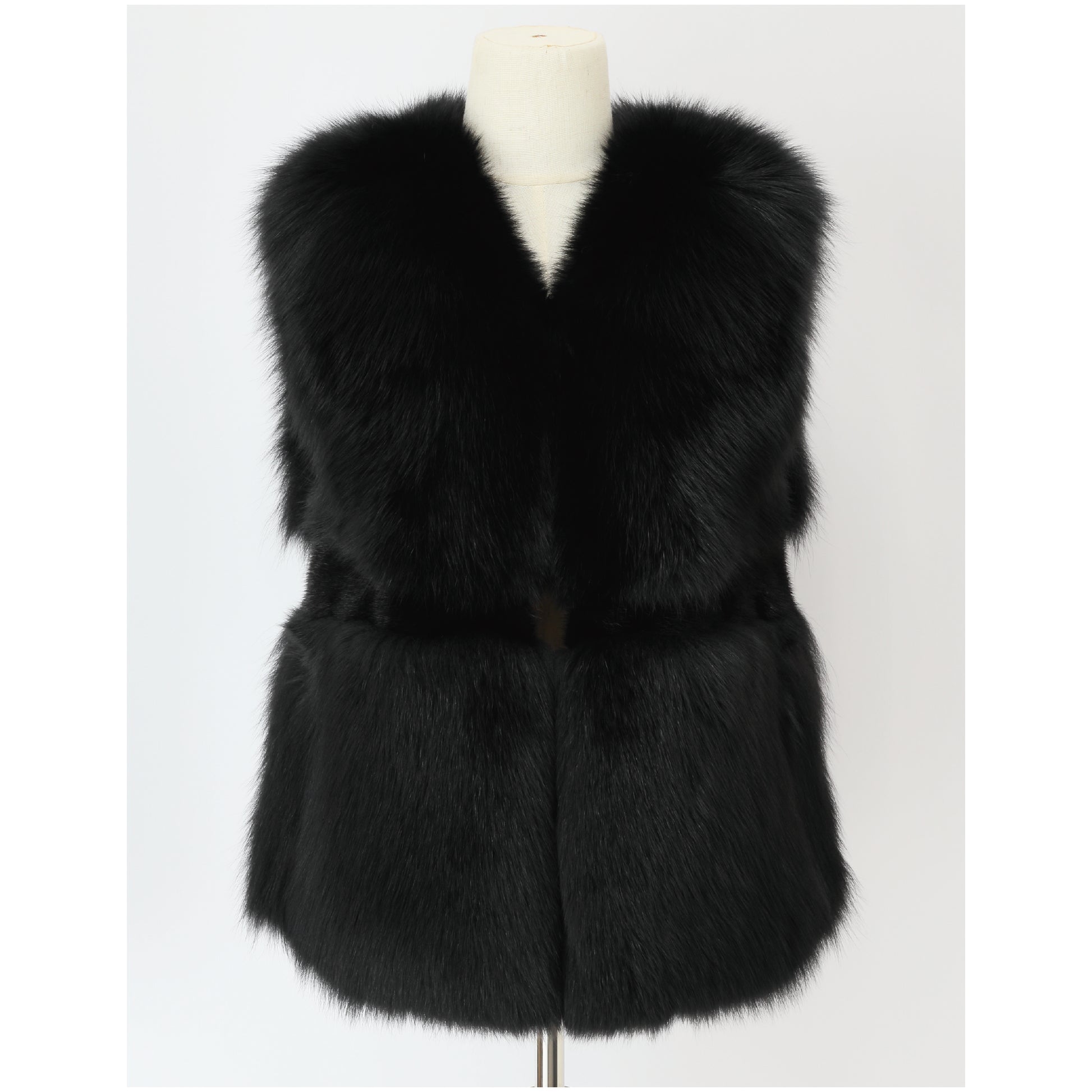 深みのあるブラックミンクの艶に、フォックス特有のふんわりとしたボリュームが重なり合うファーベスト。漆黒の濃淡が立体感を生み、シンプルなコーディネートに合わせても一気に洗練された印象へ。上品さと存在感を兼ね備えた、大人の冬スタイルを引き締めてくれる一着です。